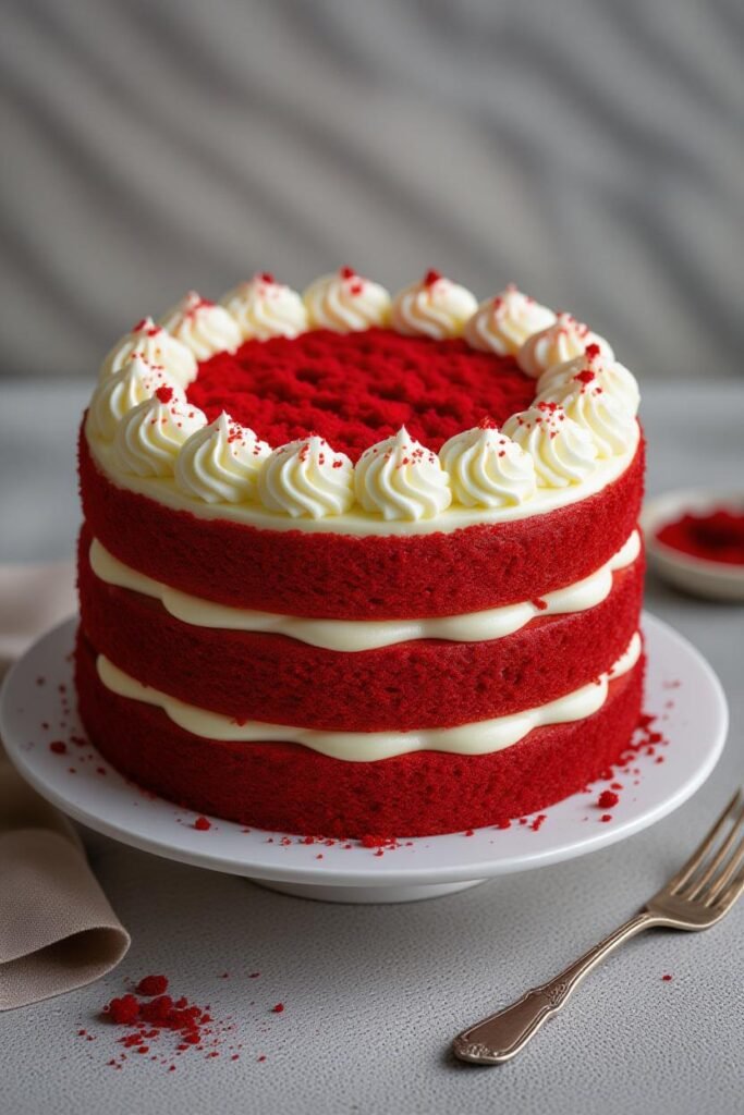 Red velvet cake is more than a dessert—it’s an experience. Its bright red color feels festive, the creamy frosting is indulgent, and the subtle cocoa flavor keeps it from being too sweet. It’s perfect for romantic moments like Valentine’s Day or big celebrations like weddings.